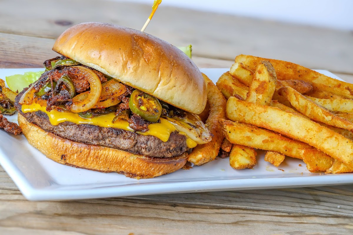Stopped in for the first time on our way out of town. Heard some whispers on the blabber book about it. Here was my chance to find out firsthand and boy was I glad I did. One of the best burgers I’ve ever ordered! Ordered the basic burger that comes with fries, veggies or salad. I opted for the salad on this 94 degree day,lol. And, WOW, what a meal. Fresh salad with onions cucumber tomato and cheese. Was looking for a nap after that meal. Noisy, busy atmosphere with prepared servers. I plan to go back for sure.