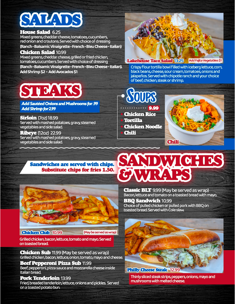 LakeHouse Grill Menu